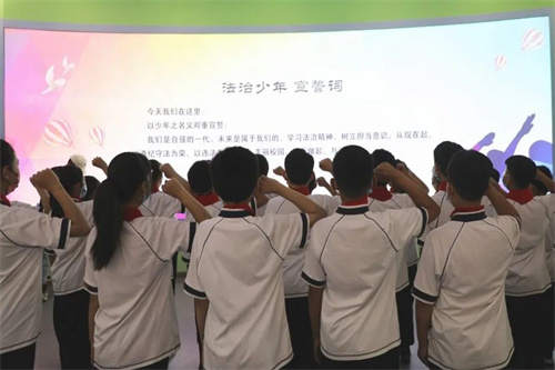 在青少年法治教育实践基地,来自365登录平台_365体育平台bet下载入口_义乌365医保电话号码第二实验小学的学生们在员额法官秦明和法官助理庞琳耐心细致地讲解下,了解了青少年高发的犯罪类型以及如何预防犯罪,如何用法律武器保障自己的合法权益。通过聆听讲解、进行模拟审判法庭体验等活动,同学们切实感受到法律的威严与尊严,并在法官的带领下,就践行“法治少年”作出了庄严承诺,度过了一个有意义的儿童节。